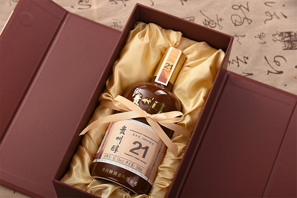 貴州醇酒以優質高粱、小麥為原料,配以當地甘冽泉水,采用清蒸清燒續糟工藝(一般濃香型采用混蒸混燒),中溫和高溫混合曲作為糖化發酵劑(大多數濃香酒采用中溫曲),大配比續糟為配糟,較低的淀粉含量入窖(淀粉含量為12至13G / KG其它濃香為16G/KG),接酒酒度為56度至63度(川派和蘇淮派濃香為70度左右),陶壇長期存放老熟。其感官特點表現為:清澈或微黃透明,香氣優雅舒適,味醇厚、飽滿、圓潤,香與味和諧,回味悠長,陳香悠遠。酒體獨具特色!